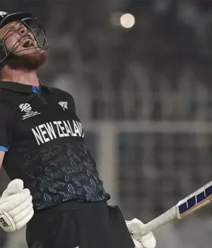 O século mais rápido na história da Copa do Mundo T20 foi uma rara demonstração de poder e timing no Eden Gardens. O domínio do pé dianteiro de Allen e a seleção impecável de chutes fizeram com que ele limpasse as cordas de forma consistente, com as últimas 24 corridas – 76 de 100 – saindo de apenas cinco lançamentos de Marco Jansen, cujo período de 53 sobre 2,5 se transformou em um pesadelo.