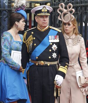 No entanto, ele compareceu com suas filhas Beatrice e Eugenie em seu uniforme formal da Marinha.