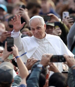 Enquanto acenava para a multidão na parte de trás de seu carro na Praça de São Pedro, na Cidade do Vaticano, o momento agora viral viu Leo acenando para a multidão enquanto alguém gritava: “Vão, Cubs!”