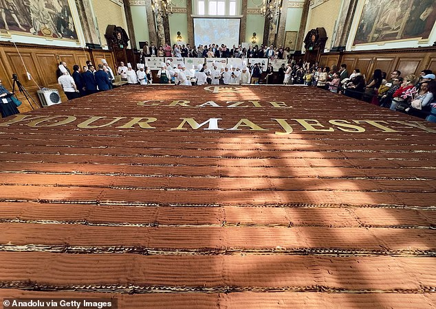 Cem chefs italianos reuniram-se na Câmara Municipal de Cheslea durante o fim de semana para criar uma das sobremesas mais conhecidas do seu país e dedicá-la aos membros da família real.