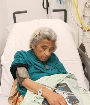 Laila Swif, 68, tão fraca que foi levada ao hospital na semana passada, mas o tratamento da glicose está rejeitando todo tipo de tratamento