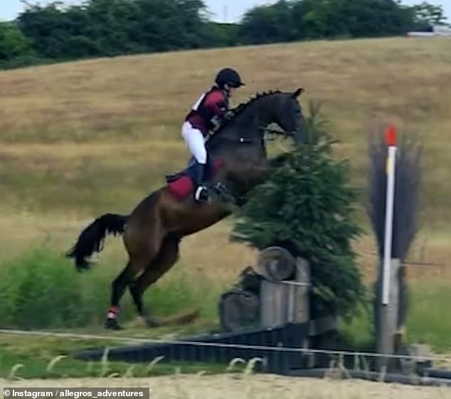 Outro post de 2023, cheio das fotos da temporada de equitação daquele ano, mostrou o salto médio de York em seu cavalo vestido com o equipamento de toda a competição.