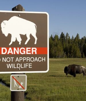 Os funcionários do parque enfatizaram a importância de manter uma distância segura – 25 jardas de animais grandes como o bisonte – para proteger os visitantes