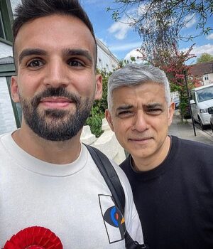 Meta Koban MBE (à esquerda, prefeito Sadiq Khan), 32, foi nomeado por alguns anos aos 21 anos depois de ser o conselheiro mais jovem do Labore