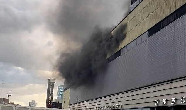 O parque de estacionamento multi -history de Westfield Stratford como brilhar no parque – fumando enche o ar com uma nuvem de fumaça quando os compradores envolvidos estão andando no passado