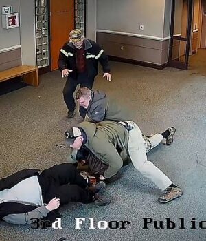 O oficial de comunicações do tribunal Jared Nef informou em um incidente que, quando estava no escritório do promotor, ouviu a voz e uma audiência alta, que soa como uma queda.