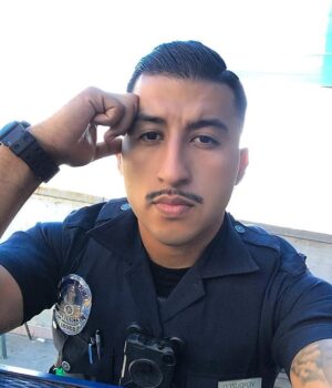 A foto de Verduzo também foi mostrada em seu uniforme da polícia de Los Angeles e em seu retrato oficial do Exército dos EUA na conta de mídia social.