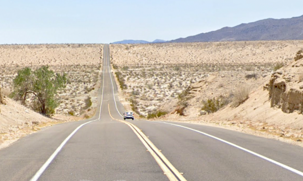 A perseguição final coloca três carros, estendendo um rollerocator de lixo na estrada deserta. Existem alguma magia do cinema envolvida na perspectiva, mas “Texas Deep” é um lugar real, onde a estrada de Borego Springs cai e cresce, excede uma fumaça sazonal. O adolescente que Wella também cobre a parede inferior, que é uma placa que declara “Bem-vindo ao Parque Estadual do Deserto de Anja-Borego”.