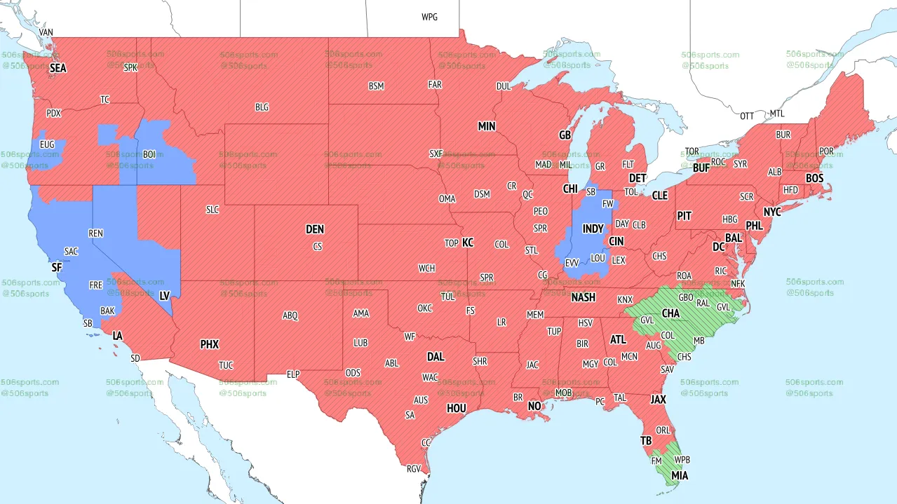 AquiMapa do jogo de boi do boi mapa Até 506sports.com. As zonas azuis onde o jogo Raiders vs. Colts serão exibidas na TV.
