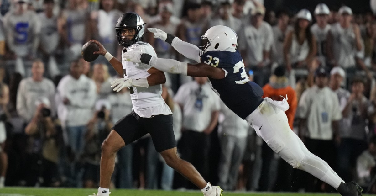 A primeira ocupação da segunda metade do estado de Pen mostrou os sinais de vida, mas o Plus terminou com um ponto no território. Oregon levou a procissão logo abaixo do campo e, com a ajuda do julgamento equivocado reverso e uma chamada questionável de retenção perdida, Dante Moore para Dier para Deier Hill Jr. pela primeira vez no passe de 8-P-touchdown.