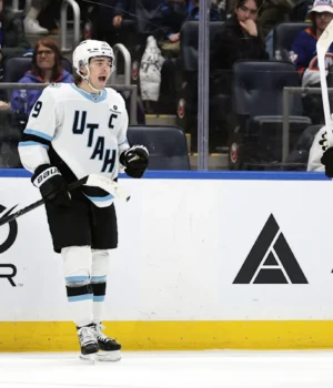 JJ Pietarka, Lawson Crews e Barrett Heaton também marcaram pelo Utah, que venceu sua quarta vitória consecutiva. Karel Vejmelka fez 25 defesas para os Mammoths.