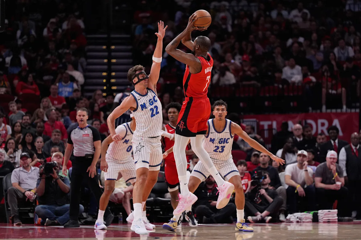 Orlando liderava por um ponto quando Amen Thompson colocou o Rockets na liderança com uma enterrada após assistência de Durant faltando menos de um minuto para o final da prorrogação. Jabari Smith Jr. bloqueou uma bandeja de Franz Wagner e o salto para trás de Durant fez 113-110 faltando 9,2 segundos para o fim.
