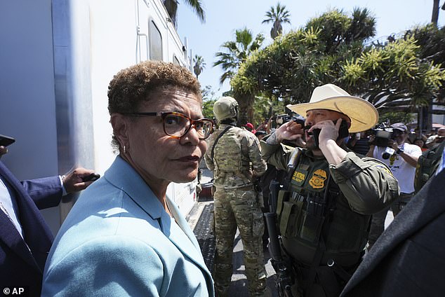 O prefeito Karen Bus de Los Angeles às segundas -feiras enfrentou sua campanha de imigração ‘ofensiva’ no confronto das pessoas e condenou sua campanha de imigração ‘ofensiva’