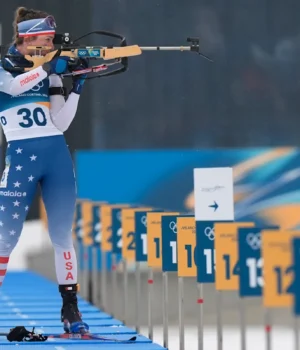 Tem três membros Biatlo dos EUA A equipe é acompanhada pela Guarda Nacional de Vermont: sargento. Deedra Irwin, Spc. Sean Doherty e Spc. Maxime Germain. Irwin e Doherty são membros do Programa de Atletas de Classe Mundial do Exército dos EUA.
