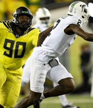 Calwells em degraus, defesa grande, mas surpreendentemente, de retirada. Ele obteve uma nota de destação da PFF com mais de 1,5 diretamente em três temporada direta em Houston, este ano em Oregon. Os Chargers provavelmente queriam lidar com Kenneth Grant defensivamente na primeira rodada, mas Calwell, especialmente na terceira rodada, é um prêmio de consolação.