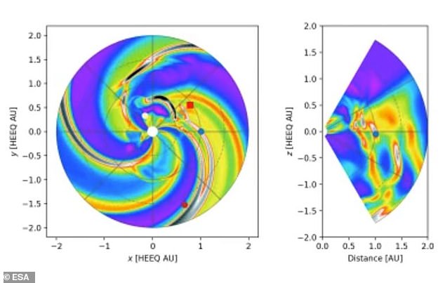 A Juha-Pekka Luntama Melonline, chefe do escritório climática espacial da ESA, disse: ‘A previsão desse CME era que ela poderia atingir um flash hoje, mas provavelmente subiria e prosseguia para a Terra.