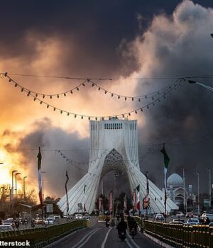 Ondas de fumaça aumentam após um ataque aéreo EUA-Israel perto da Torre Azadi, em Teerã, na terça-feira