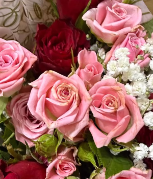 Estava acompanhado de fotos de rosas cor de rosa com pétalas marrons e enrugadas.