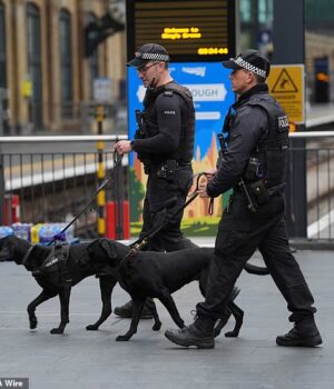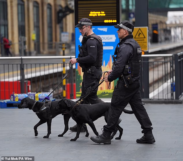 Policiais foram vistos na estação King’s Cross de Londres na manhã de segunda-feira