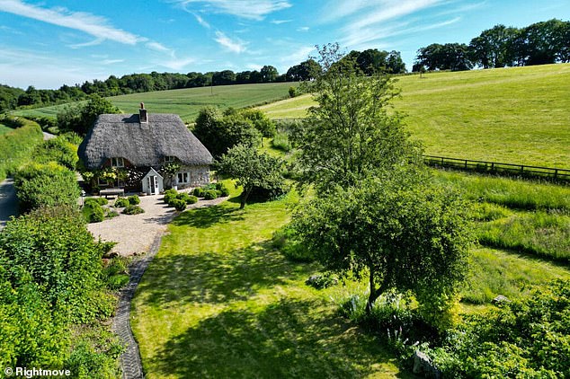 Sua lista afirma: ‘Esta bela belo século 18 no vale da colina, na beira do Westwood, a cabana de personagens listada que se orgulha dos recursos definidos por pouco mais de 5 acres.