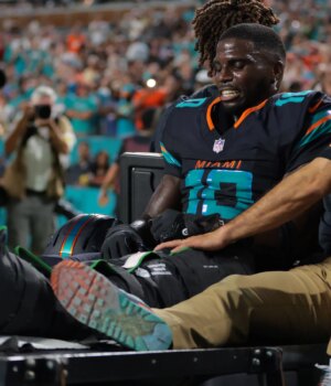 Dolphins Receiver Tireick Hill contra o New York Jets na segunda-feira em futebol noturno rasgado os outros ligamentos de vencer por 2-22 dos golfinhos, bem como os golfinhos.