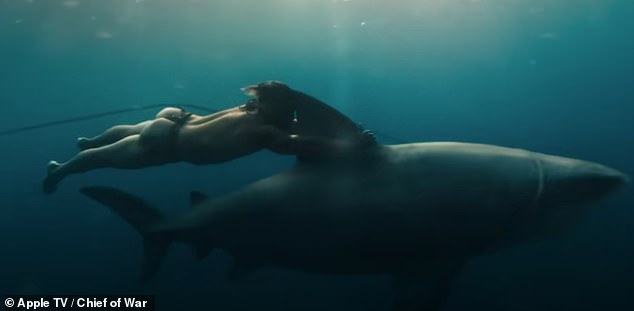 Os havaianos fizeram tubarões? Se você acredita que o novo drama de Jason Momoa, o chefe da guerra, a resposta é sim. Acima: Momwar Fighter Personagem ‘Riding’ no início do episódio de abertura do show