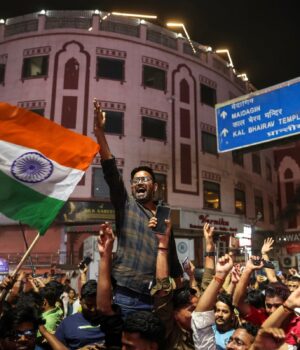 Fogos de artifício iluminaram o céu noturno e música soava nos alto-falantes enquanto as pessoas saíam às ruas em toda a Índia no domingo para comemorar a vitória histórica do país sobre a Nova Zelândia na final da Copa do Mundo Masculina ICC T20 de 2026.