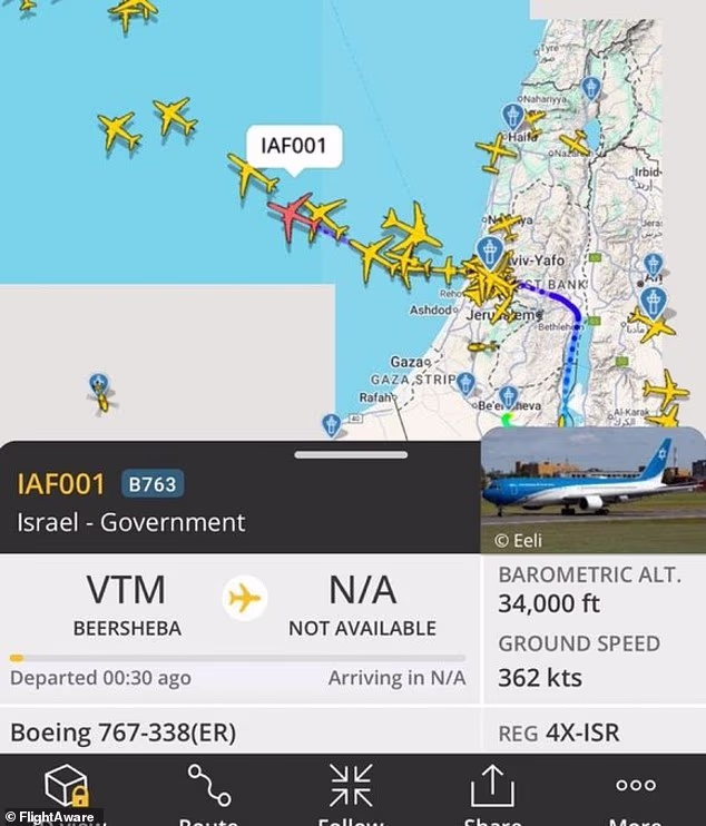 A aeronave estatal Asa de Sião de Israel deixou o país, rumando sobre o Mediterrâneo, gerando especulações de um ataque dos EUA ao Irã.