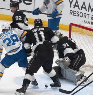 LOS ANGELES – Ao lutar pela sobrevivência na pós-temporada, a única coisa que importa é conseguir as vitórias, por mais feias que sejam. A vitória dos Kings por 2 a 1 na prorrogação sobre o St. Louis Blues na noite de quarta-feira não poderia ser um exemplo melhor. Certamente não era mais bonito.