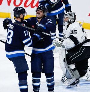 Mark Scheifele marcou gols consecutivos para fechar o placar, fazendo 5-1. Em dois períodos, o goleiro do Kings, Darcy Kuemper, defendeu 11 de 16 arremessos e foi substituído por Anton Forsberg no terceiro.