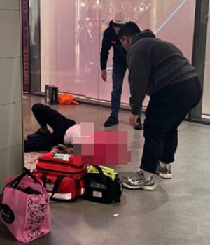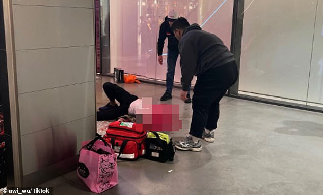 Uma testemunha compartilhou uma imagem dos paramédicos, comportando -se no chão assim que ele estava deitado no chão.
