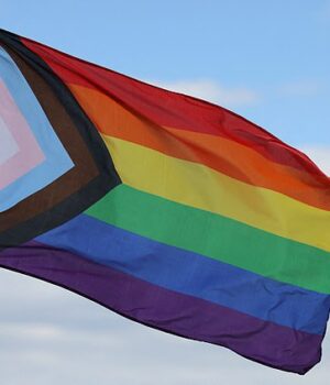 A bandeira contém bandeiras de arco -íris do orgulho, mas acrescenta outras tiras e Chevons para representar vítimas de ‘transgêneros’ e HIV/ajuda ‘a outras’ comunidades marginalizadas ‘.