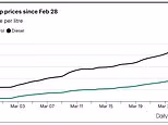 ‘Isso significa que agora subiu 31,5 centavos desde 28 de fevereiro, um aumento de 22 por cento.’ A gasolina também subiu 1,4 centavos, para 148,55 pa por litro, seu maior aumento diário desde 3 de março. A gasolina subiu agora 15,7 pa por litro ou 11,8 por cento.