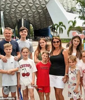 A ‘maior família’ da Grã-Bretanha, os Radfords, desfrutaram de outro passeio no fim de semana (foto durante uma viagem anterior à Disney Land)