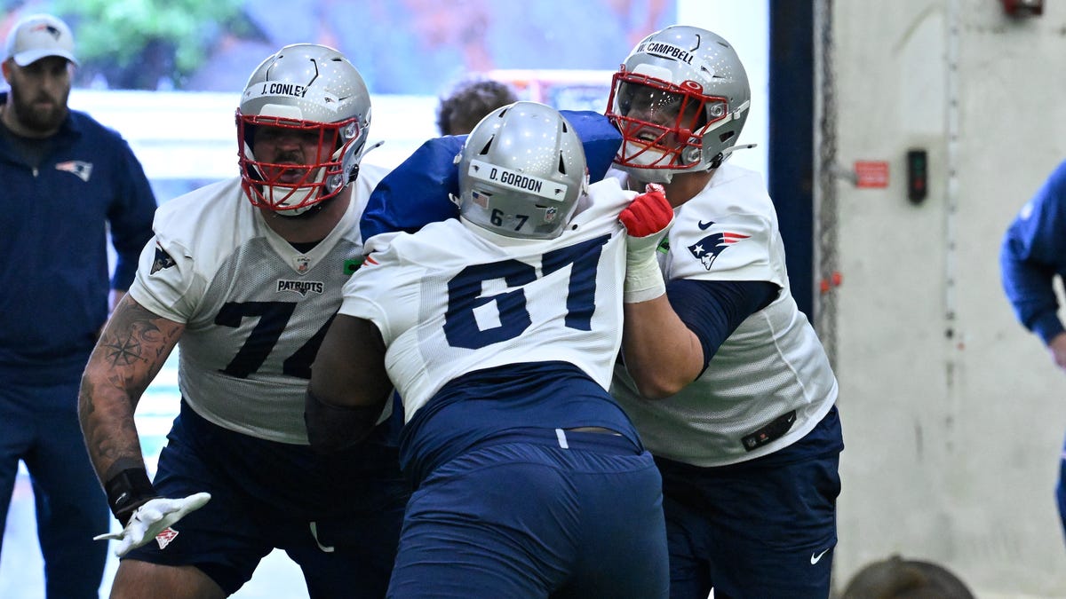 O New England Patriots Podemos ter uma prévia de sua principal unidade de linha ofensiva para a próxima temporada no OTAS Practice na terça -feira.