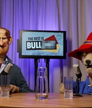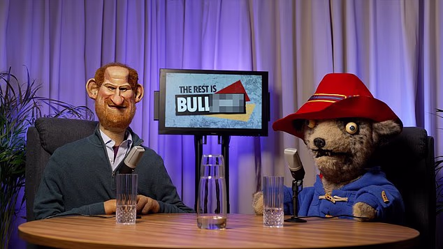Um esboço da nova série do YouTube chamada Spating Image: B ****** T, Paddington e Prince Harry Podcast são escalados como co-apresentadores.