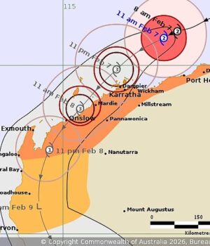 Os residentes de Purdue Roadhouse, a leste de Whim Creek e ao sul de Mardy, até Carnarvon e Pannaonica, são aconselhados a monitorar as condições e se preparar para condições climáticas adversas.