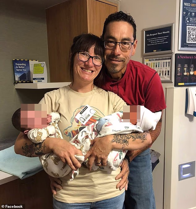 Ela orgulhosamente posou com seus netos gêmeos no Facebook no ano passado.