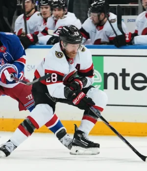 Os Senators terminaram o jogo com quatro defensores devido a Zach Sanderson e Nick Jensen terem saído de uma cirurgia no joelho.