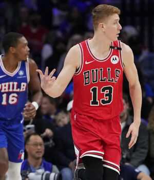 A Filadélfia (AP)-Kevin Huer atingiu cinco pontos e marcou 18 pontos, e o Chicago Bulls trabalhou para o jogo de jogo com uma vitória de 122-102 contra o Philadelphia 76rs no domingo.