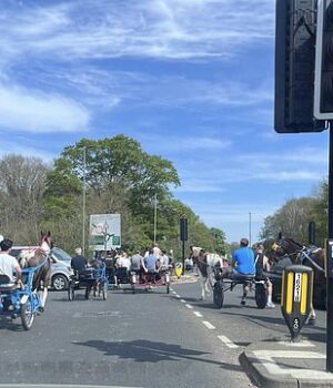 ‘Se você está se perguntando por que há tanto tráfego no domingo, é devido a corridas de cavalos…. Mas não as corridas tradicionais de cavalos que você pode esperar ‘, disse ele.
