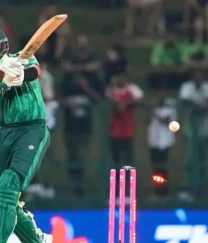 Rebatendo primeiro contra a Inglaterra no Pallekele International Cricket Stadium na terça-feira, Babar marcou 25 em 24 bolas antes de ser lançado por Jamie Overton enquanto jogava um figurão.