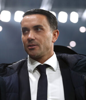 BERGAMO, ITÁLIA – 10 DE MARÇO: Raffaele Palladino, técnico da Atalanta, assiste antes da partida de primeira mão das oitavas de final da UEFA Champions League 2025/26 entre Atalanta BC e FC Bayern München no Stadio di Bergamo em 10 de março de 2026. (Foto de Marco Luzani / Getty Images)