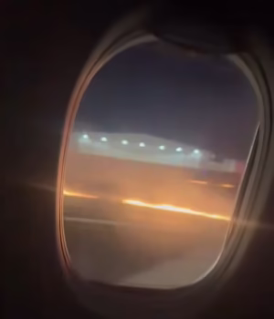 Um vídeo feito por um passageiro do voo 1067 mostrou chamas e fumaça ao longo da pista