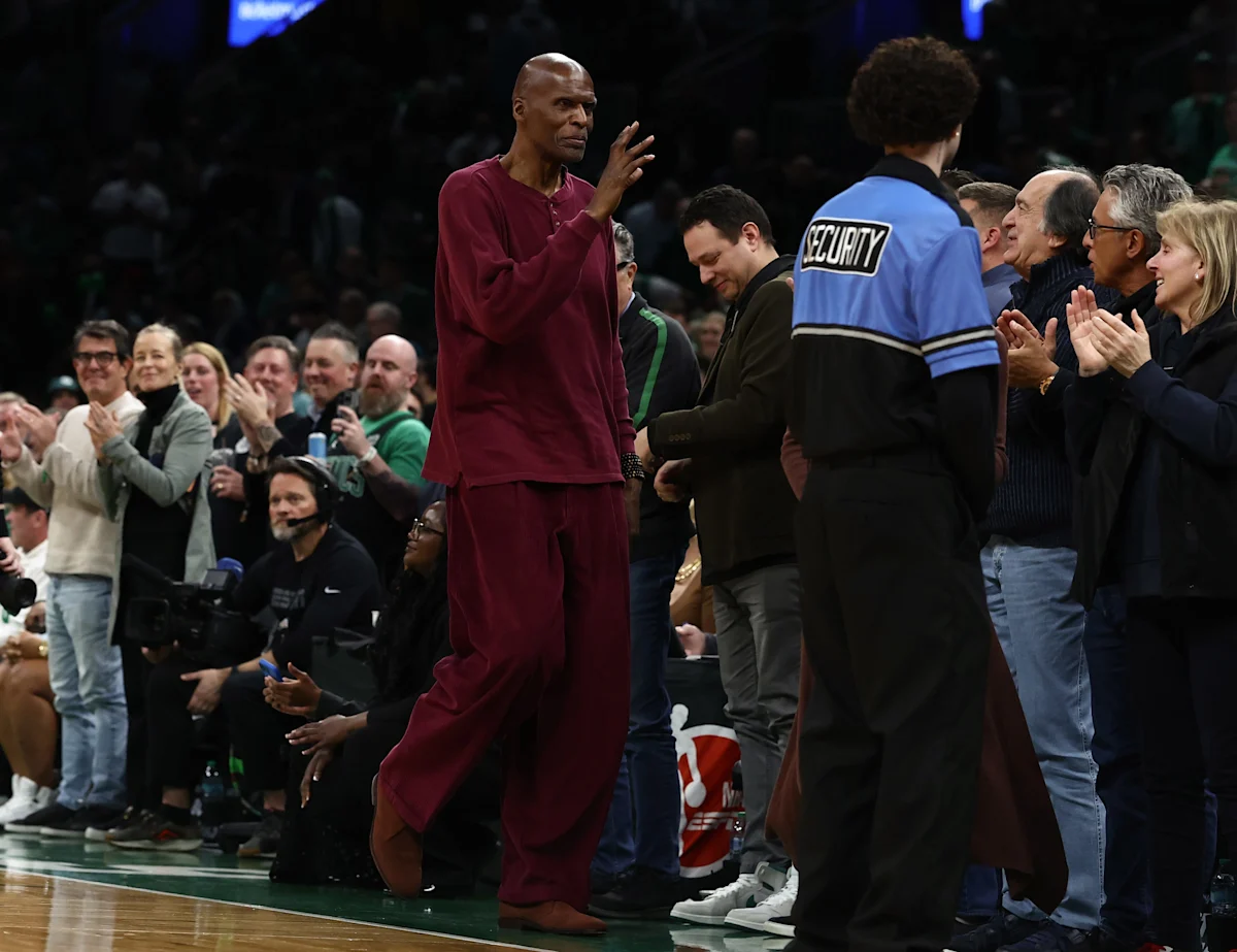 BOSTON, MA – 18 DE MARÇO: O membro do Hall da Fama e ex-Boston Celtic Robert Parish acena para a multidão durante o segundo quarto do jogo entre o Boston Celtics e o Golden State Warriors no TD Garden em 18 de março de 2026 em Boston, Massachusetts. Nota ao Usuário: O Usuário reconhece e concorda expressamente que, ao baixar e/ou usar esta fotografia, o Usuário concorda com os termos do Contrato de Licença da Getty Images. (Foto de Winslow Townson/Getty Images)