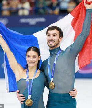 A dupla francesa – cujas vidas pessoais foram mergulhadas em escândalos – sagrou-se campeã olímpica de dança no gelo com uma pontuação total de 225,82, apenas 1,43 pontos à frente dos norte-americanos Madison Chalk e Evan Bates.