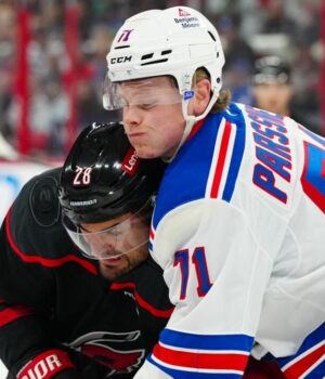 HURRICANOS: O furacão foi jogado fora do jogo da Stanley Cup -em Nova York 2022 e ’24, então houve um pequeno pagamento pela Carolina no sábado. A primeira rodada de furacões no jogo da Stanley Cup com New Jersey Devils já está definido.