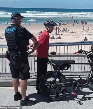 Depois que um jovem ciclista de bicicleta elétrica foi algemado em uma praia de Gold Coast, os australianos estão divididos sobre se a resposta do policial foi justificada.