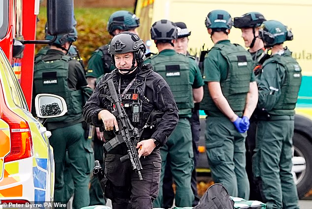 Quatro pessoas ficaram feridas hoje depois que o público estava dirigindo um carro antes que o suspeito fosse morto a tiros.