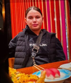 Ela é descrita como alta, alta, alta, branca, cerca de 153 cm (5’1 “) com cabelos pretos/castanhos na altura dos ombros e olhos castanhos.